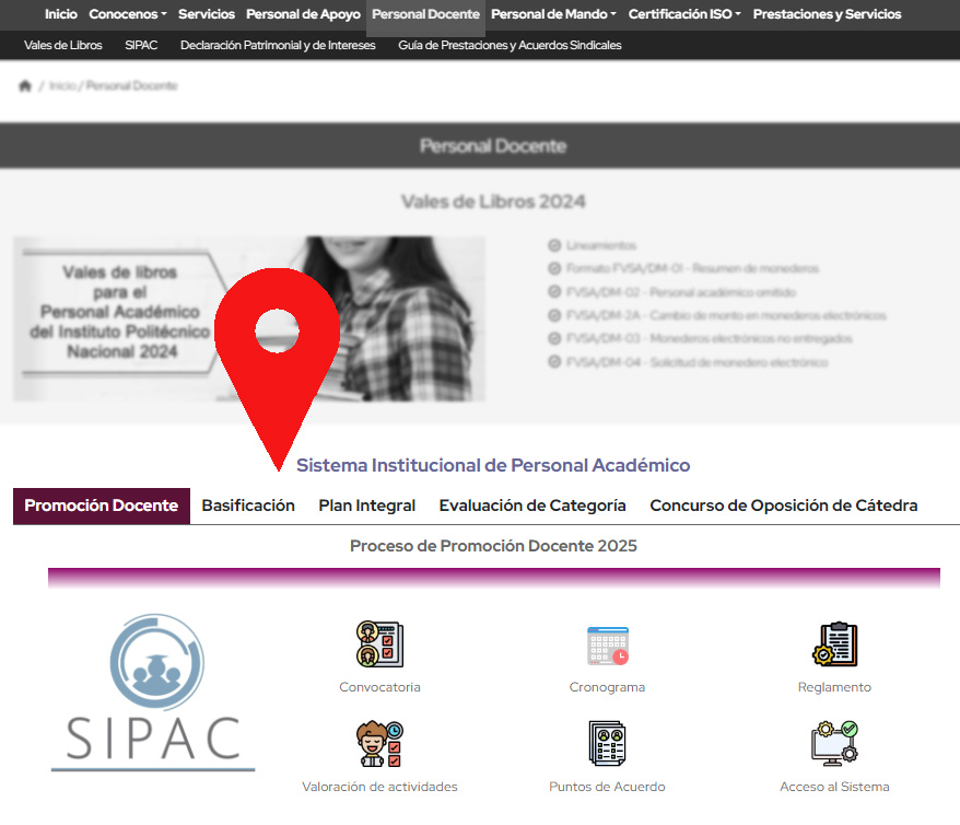 En esta sección encontraras un enlace a la página de Capital Humano donde encontrarás el SIPAC (Docentes) o SIPAAE (PAAE), alli podrás encontrar las convocatorias, fechas, enlaces y todo lo que necesitas para realizar los diferentes procesos para mejorar tu plaza en el IPN, ingresa al siguiente link según corresponda.